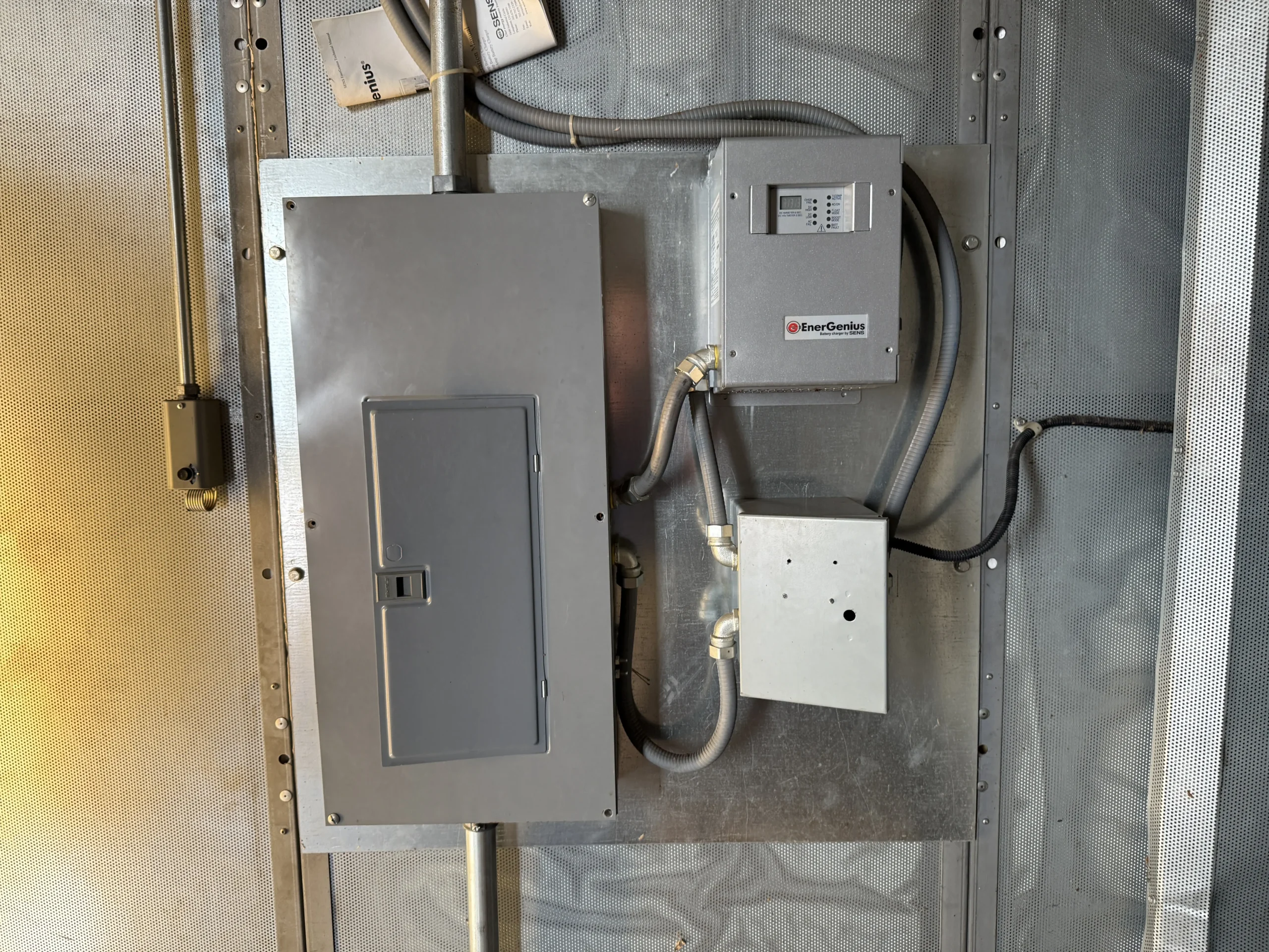 This unit is housed in a weatherproof enclosed container with integrated louvers and airflow baffles and is mounted on a 1,000-gallon UL-listed double-wall base fuel tank with secondary containment, supporting extended runtime for critical installations. Electrical output is delivered through ABB SACE S6 molded-case circuit breakers.