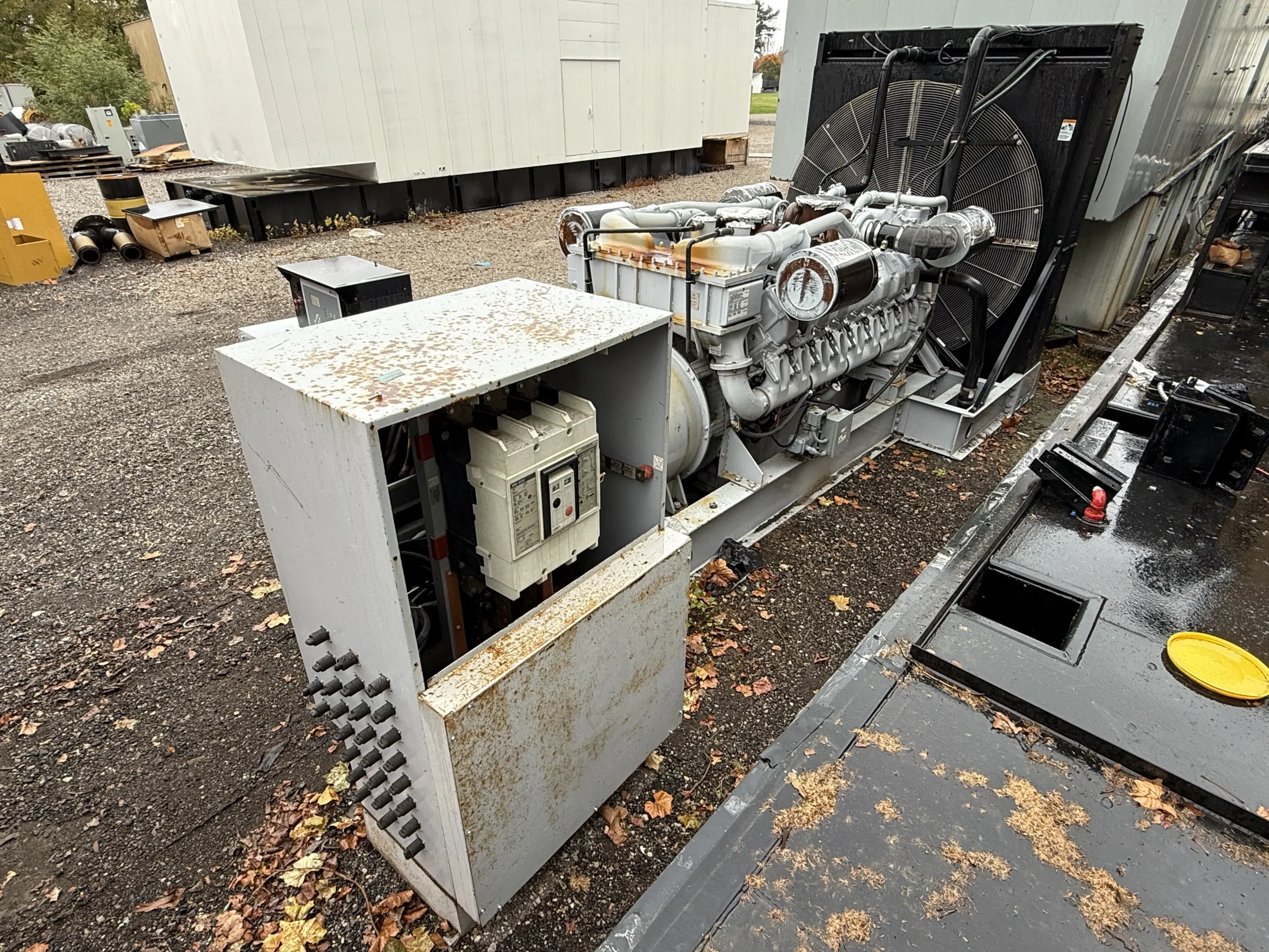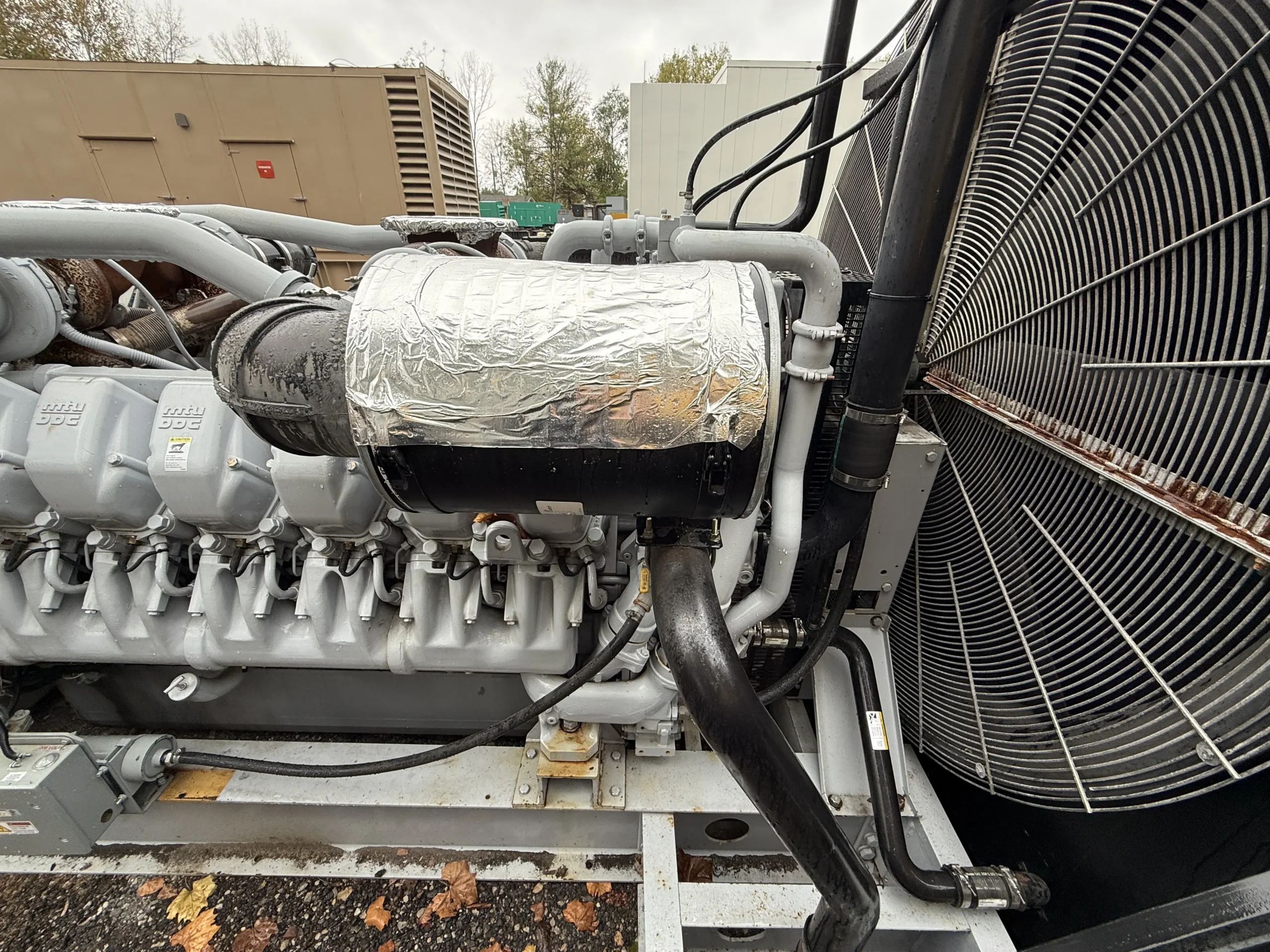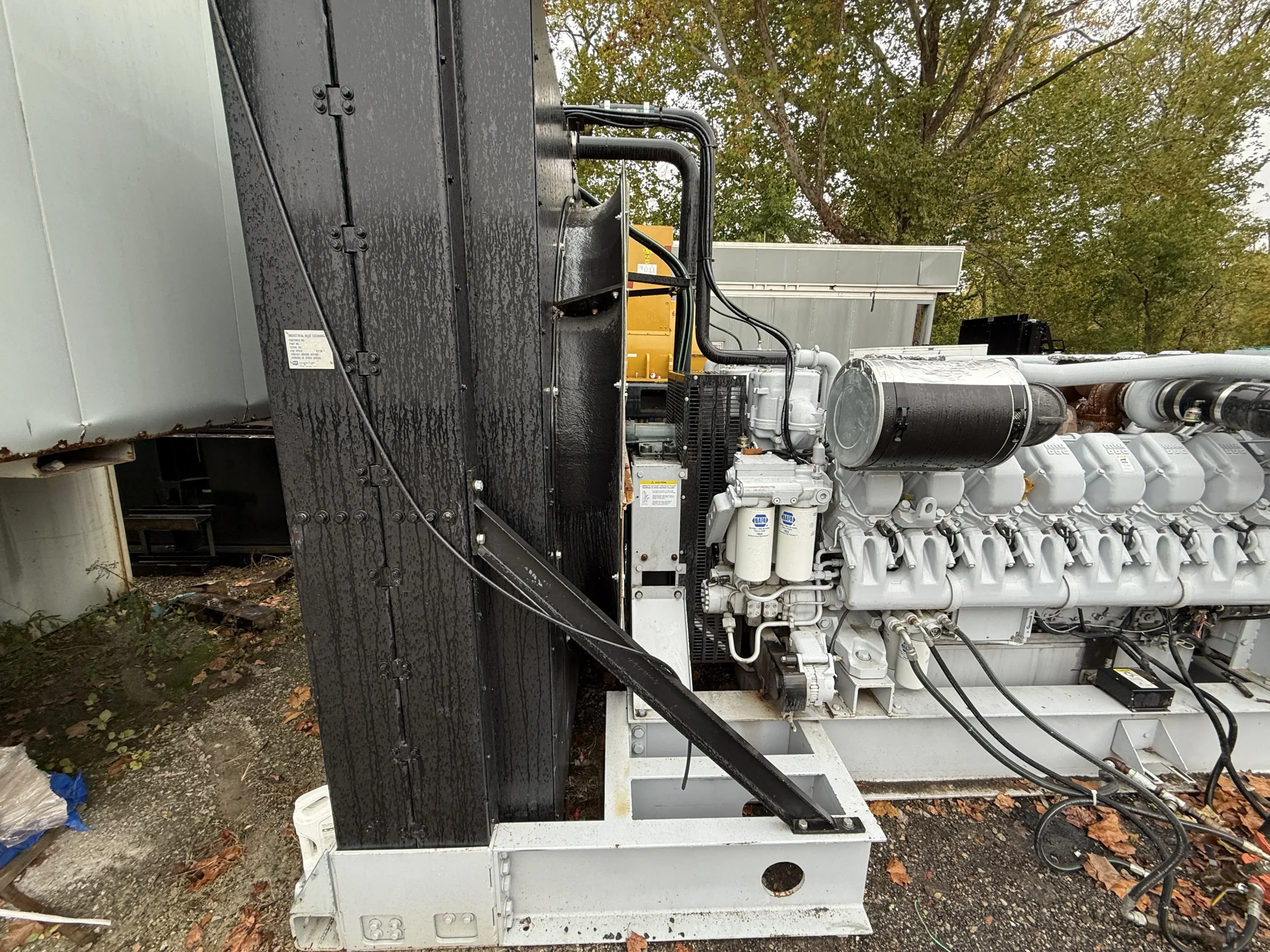 This unit is configured as an open skid package and does not include an enclosure or base fuel tank. It is equipped with an engine-driven radiator, jacket water heater, standard-duty air cleaner, electric start system, 24-volt battery set, charging alternator, and 120-volt battery charger. Built for industrial service, this MTU generator is well-suited for permanent installations, custom enclosure projects, export applications, and large-scale standby or prime power deployments.