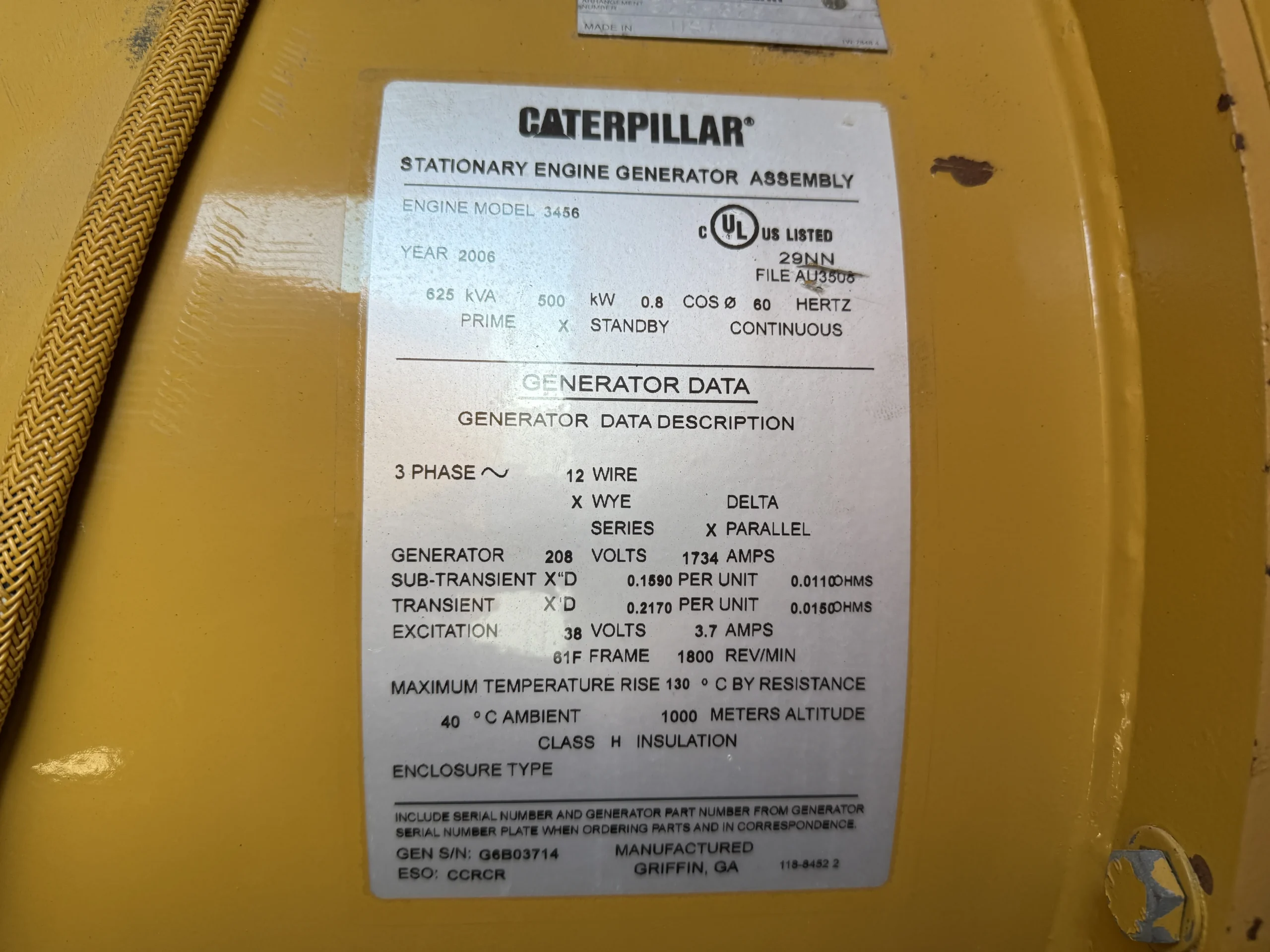 2006 CAT 3456 500kW Diesel Generator Set