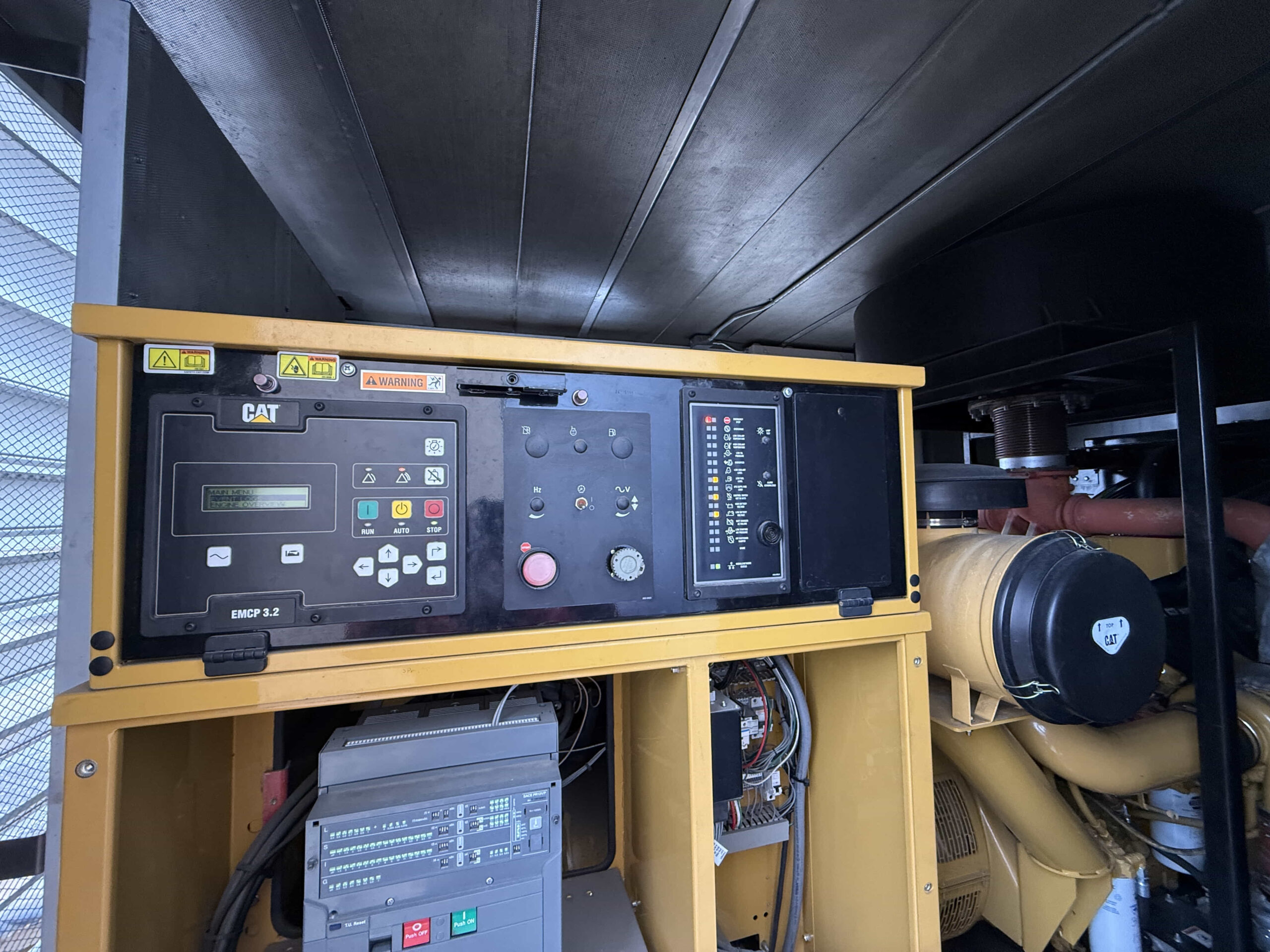 The generator is powered by the proven CAT C27 turbocharged diesel engine and is equipped with a Caterpillar SR4B generator end. Controls are provided through a Caterpillar EMCP 3.2 digital control panel, offering full system monitoring, metering, and protective shutdowns. Electrical output is delivered through a factory breaker for safe and reliable power distribution.