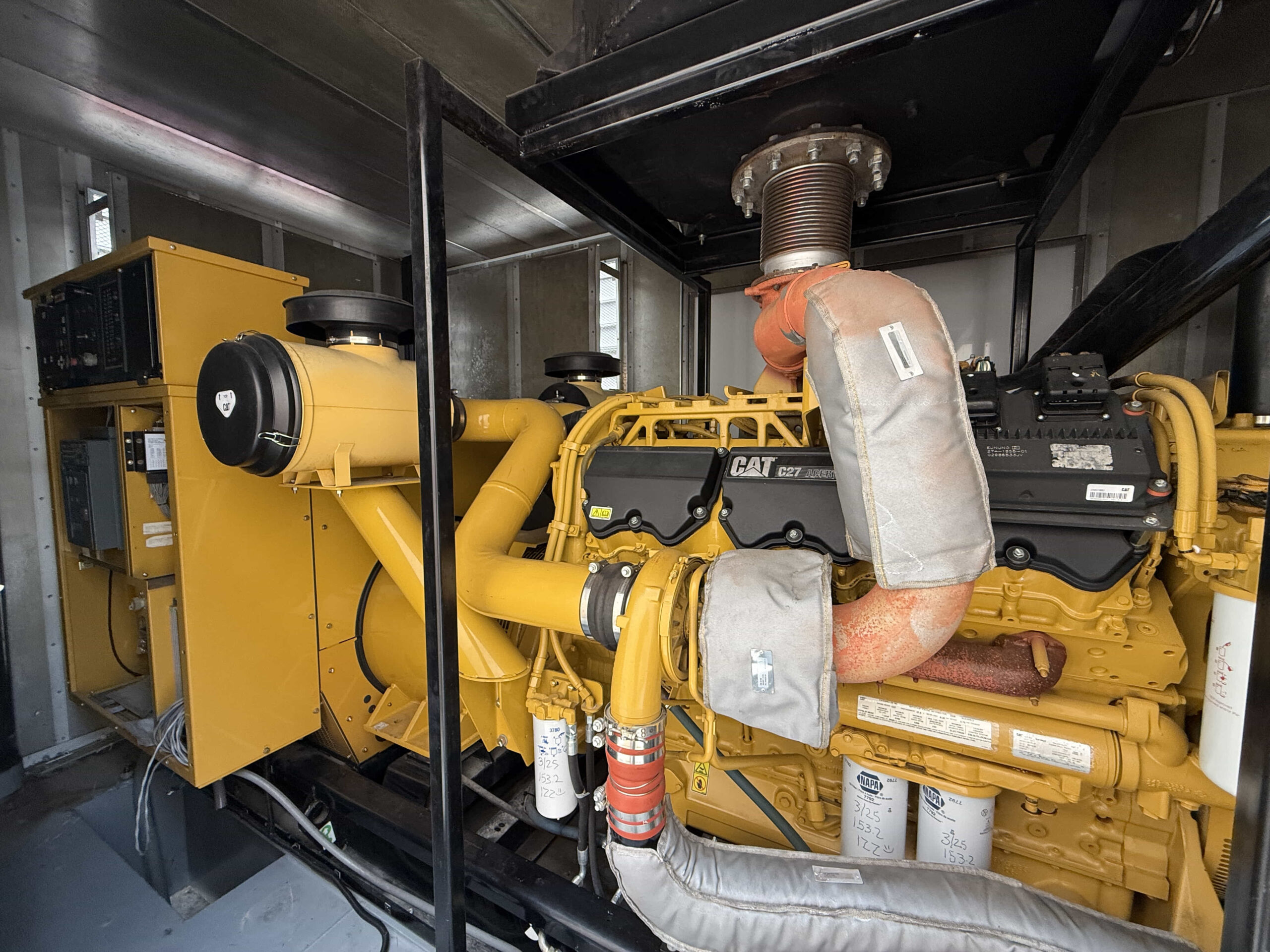 This unit is housed in a stationary enclosure and is well-suited for outdoor installation. Built on Caterpillar’s durable large-frame platform, this C27 generator is ideal for facilities, utilities, manufacturing plants, and infrastructure applications requiring dependable high-capacity standby power with minimal prior runtime.