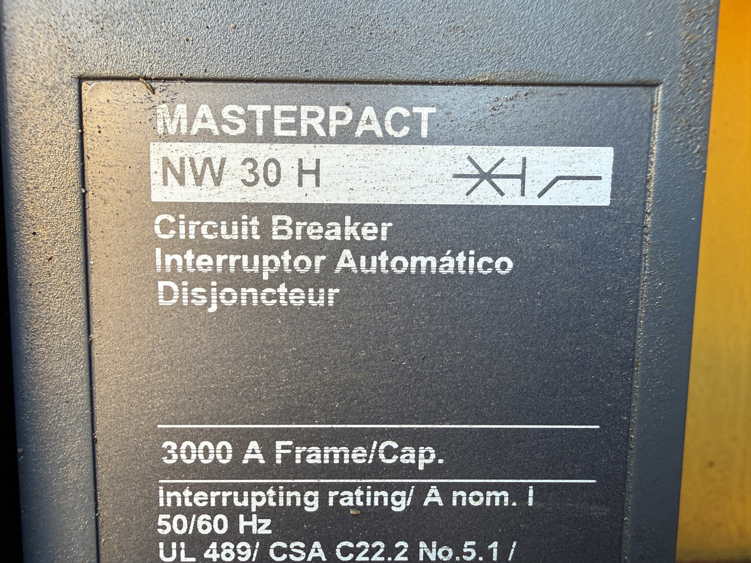 - Breaker:Schneider Electric Masterpact NW30H – 3000A Frame