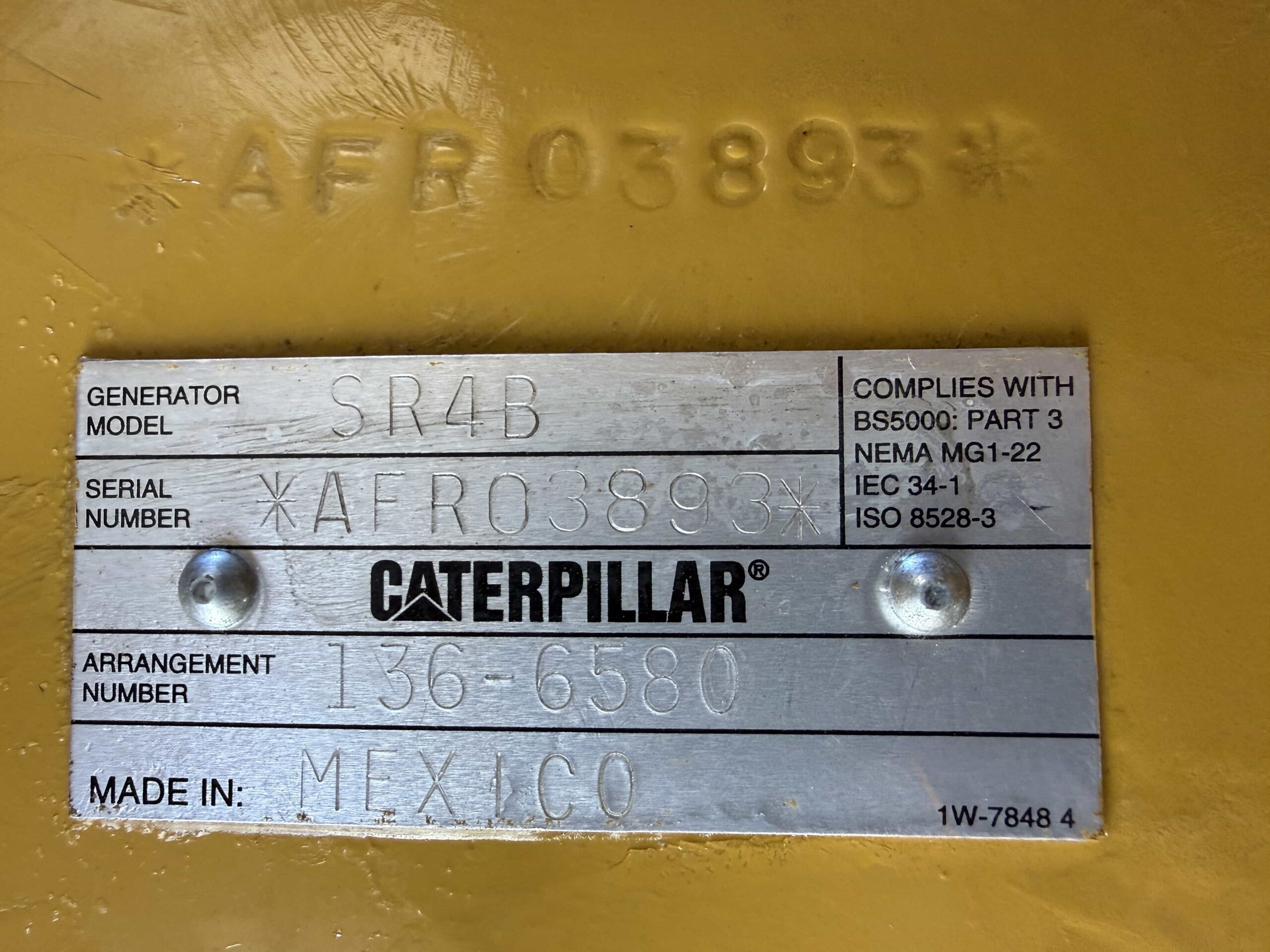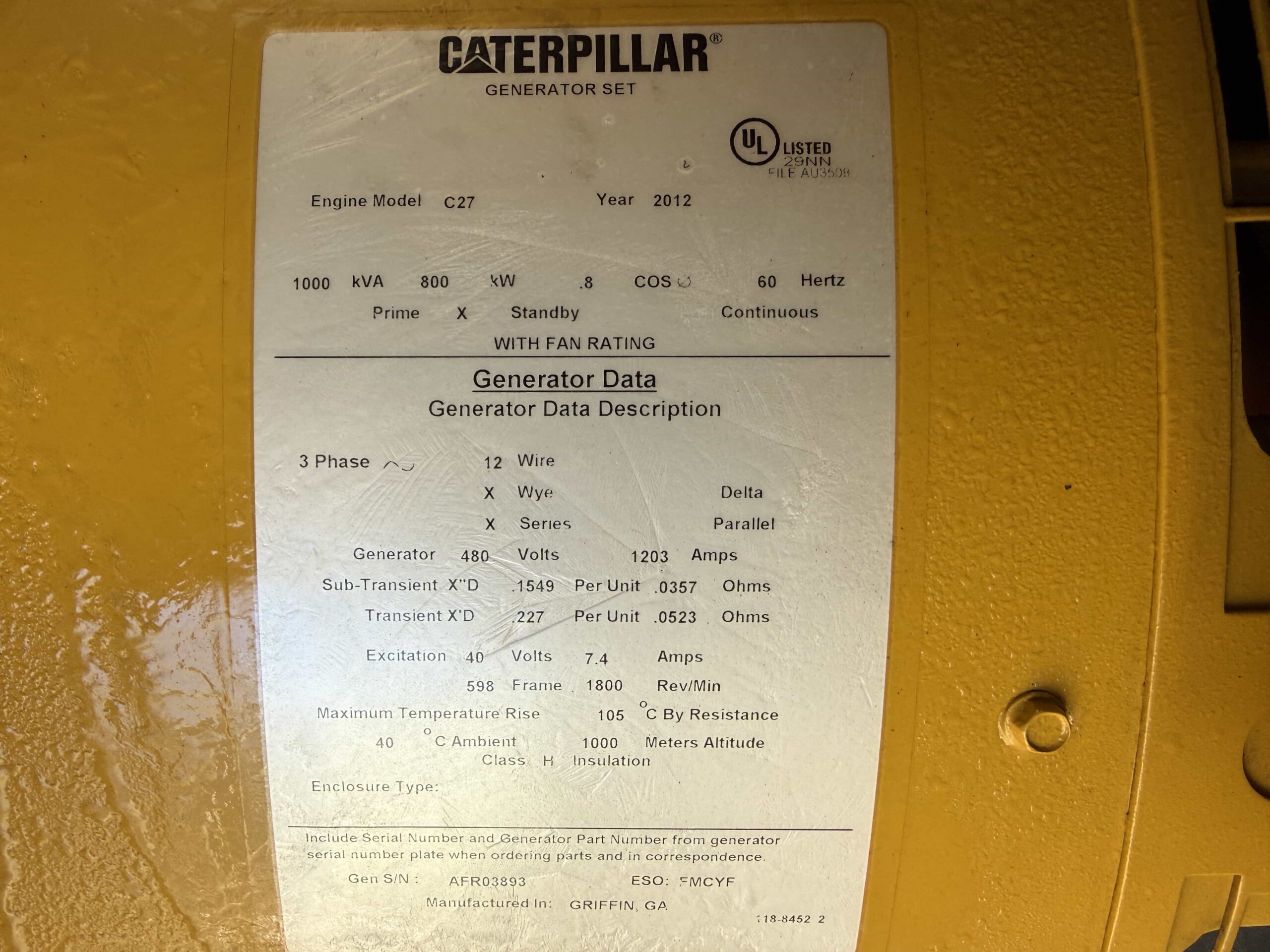 | Generator S/N | AFR03893 |