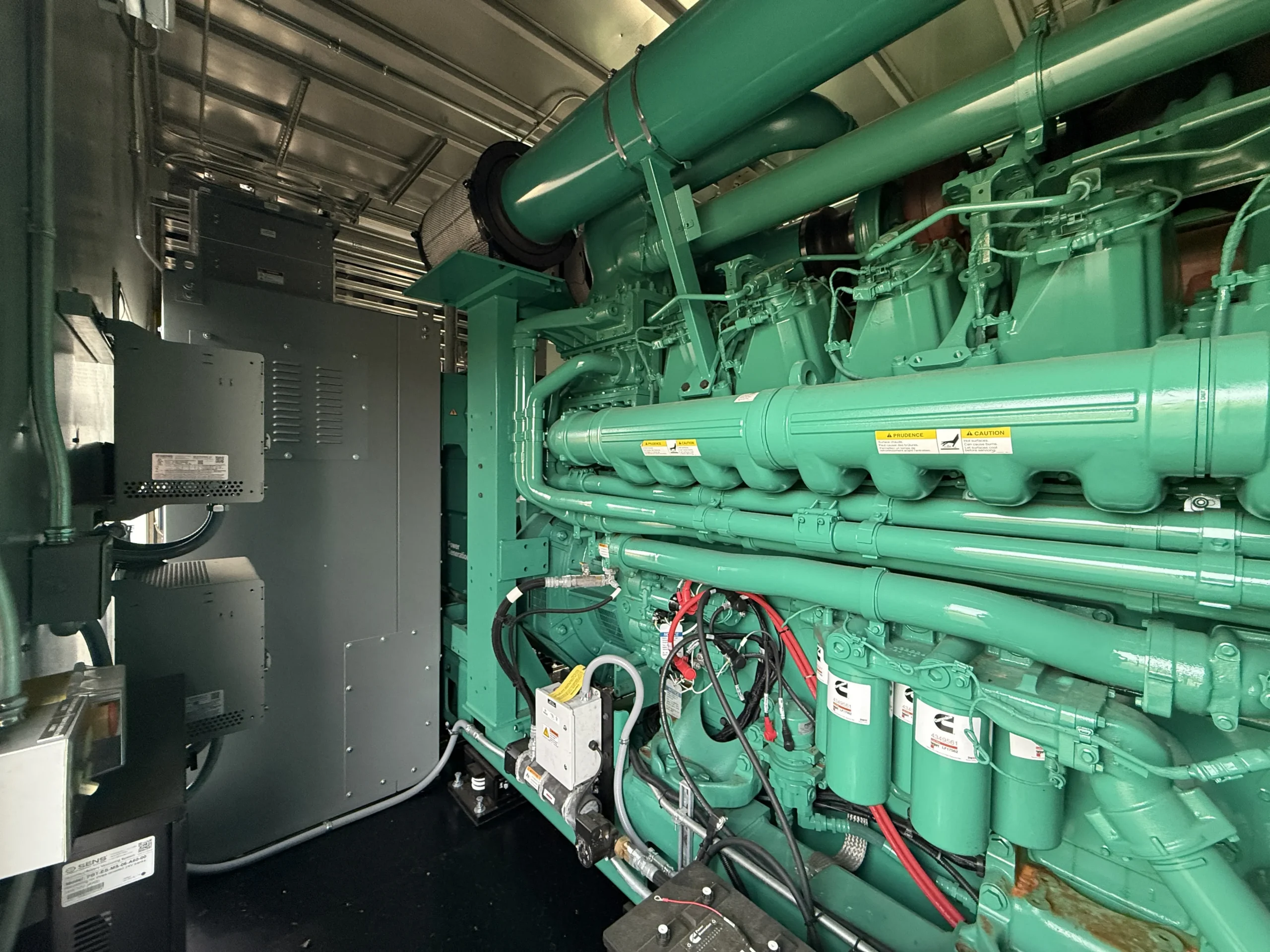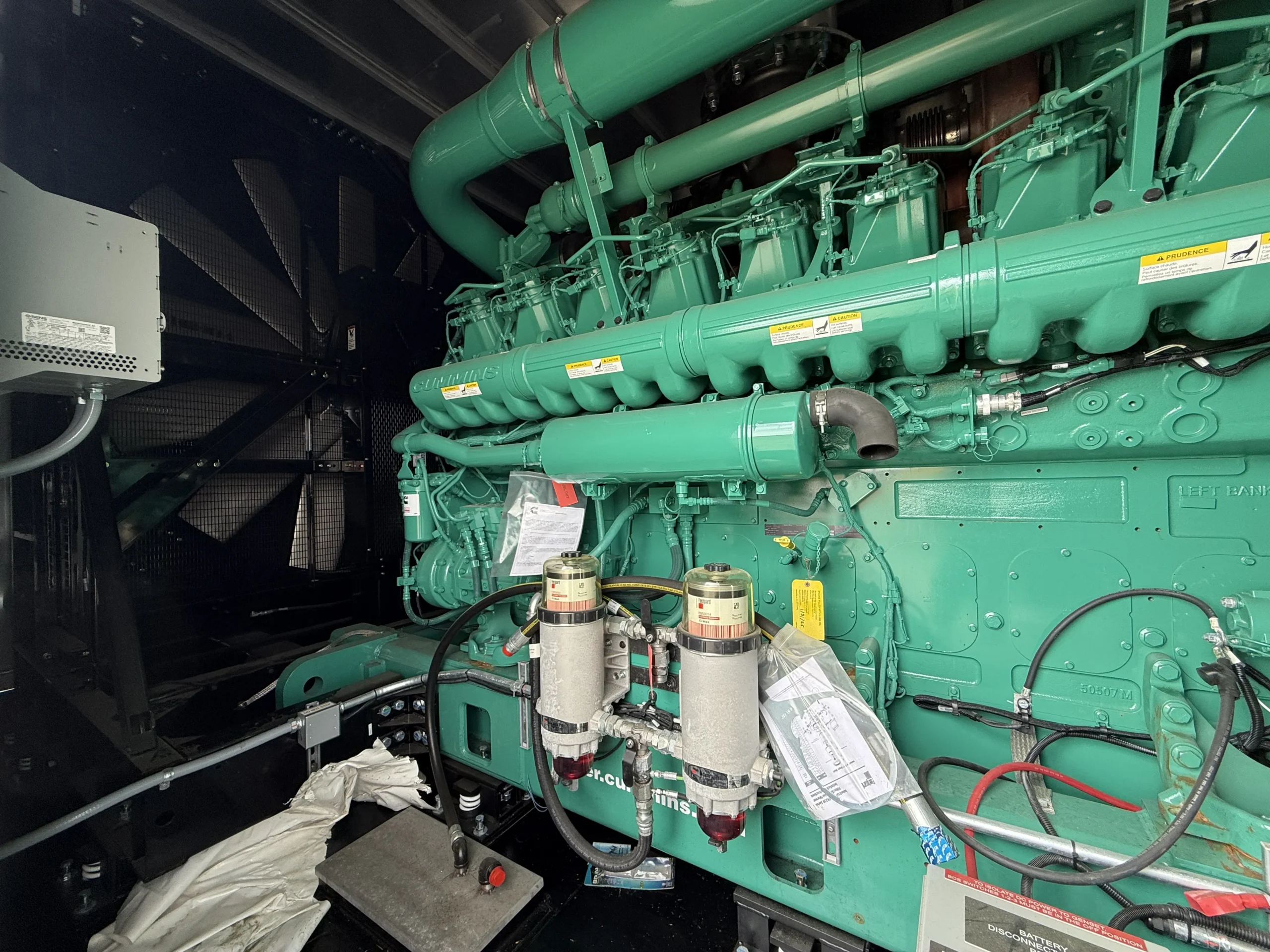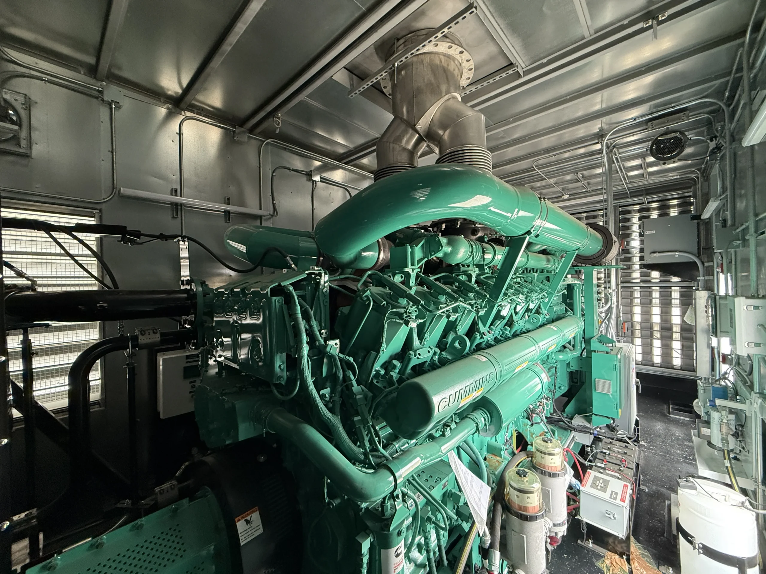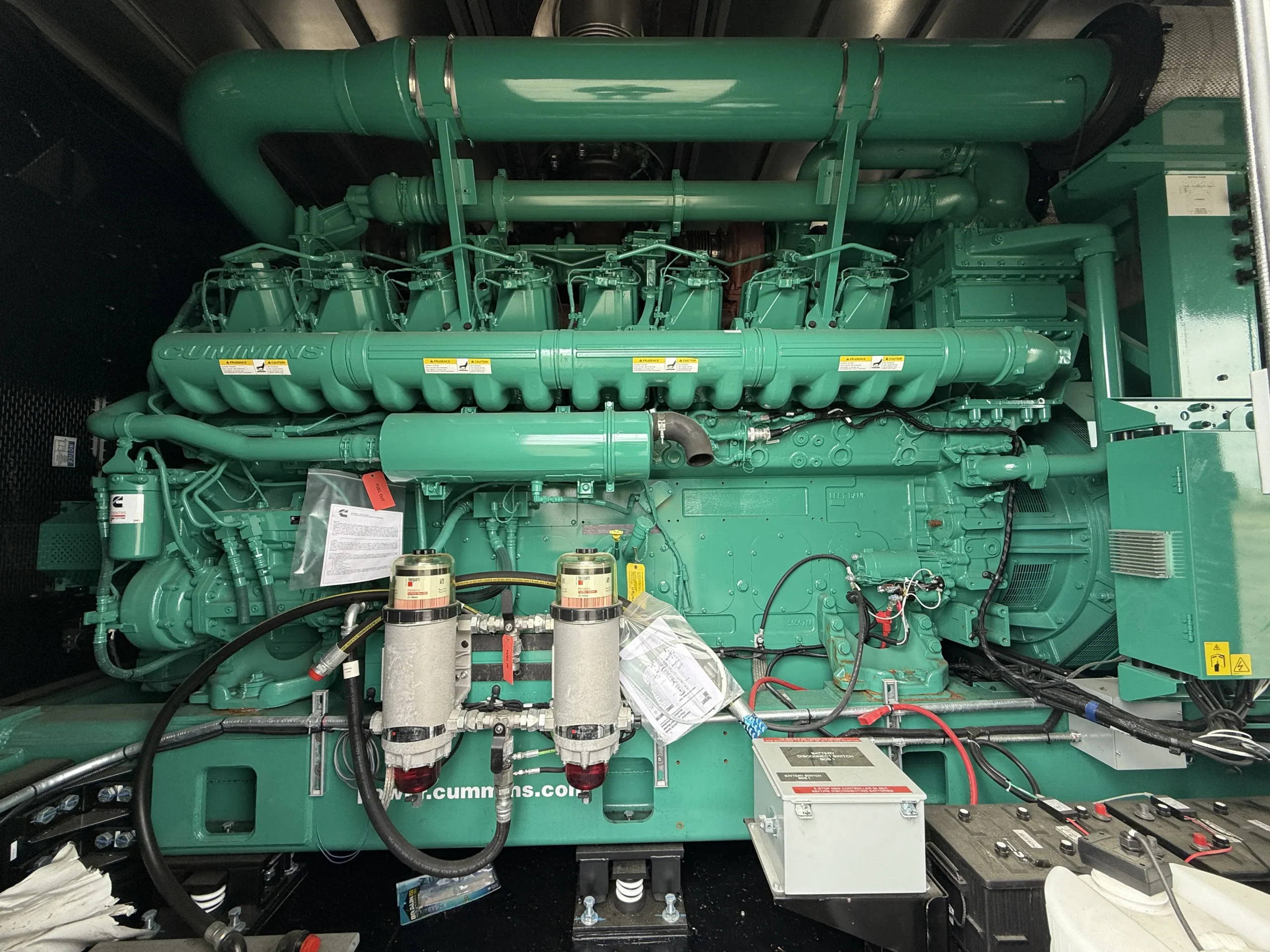 Brand new 2025 Cummins C3000D6E 3000kW diesel generator, powered by a Cummins QSK95-G9 engine (95.3L) with 0 original hours and a January 2025 build date. Rated 3000kW standby (3767 kW / 5051 HP @ 1800 RPM), this unit comes fully enclosed in a sound-attenuated weatherproof housing and includes factory-installed controls, breaker section, SENS battery monitoring system, dual battery chargers, block heater, coolant circulation pump, and complete support systems. EPA family SCEXL95.0AAA, CPL 5487. Clean, unused condition with full data plates and documentation – ready for immediate deployment in data center, industrial, or critical backup applications.