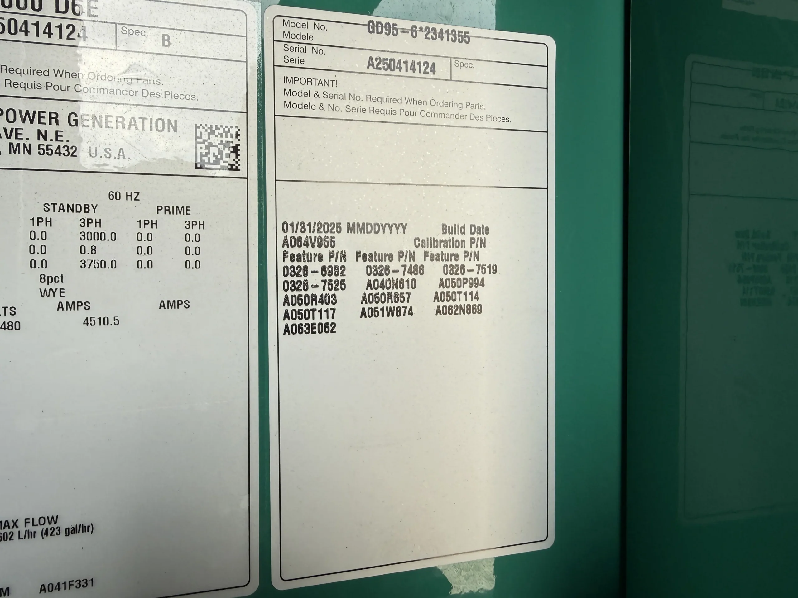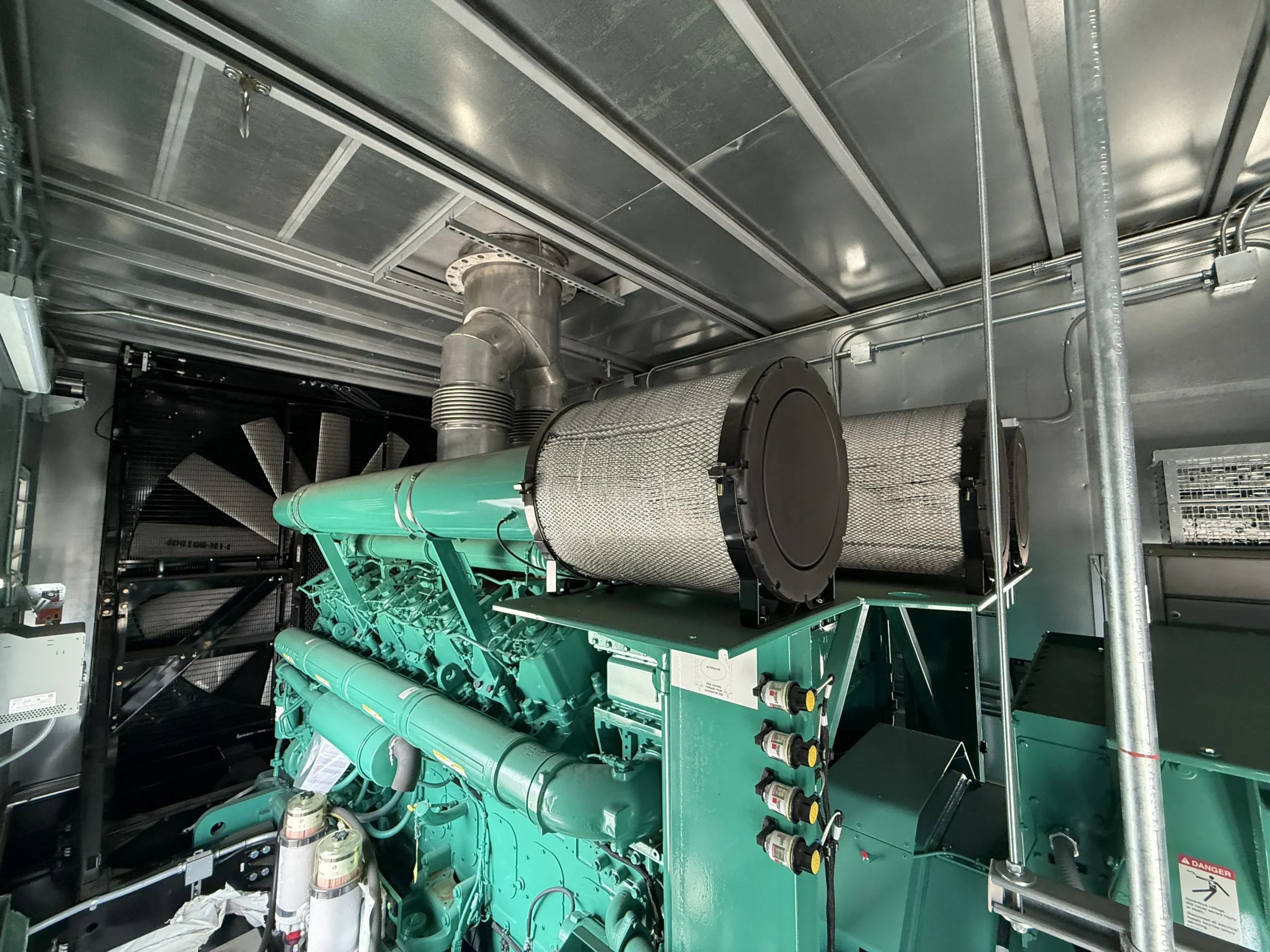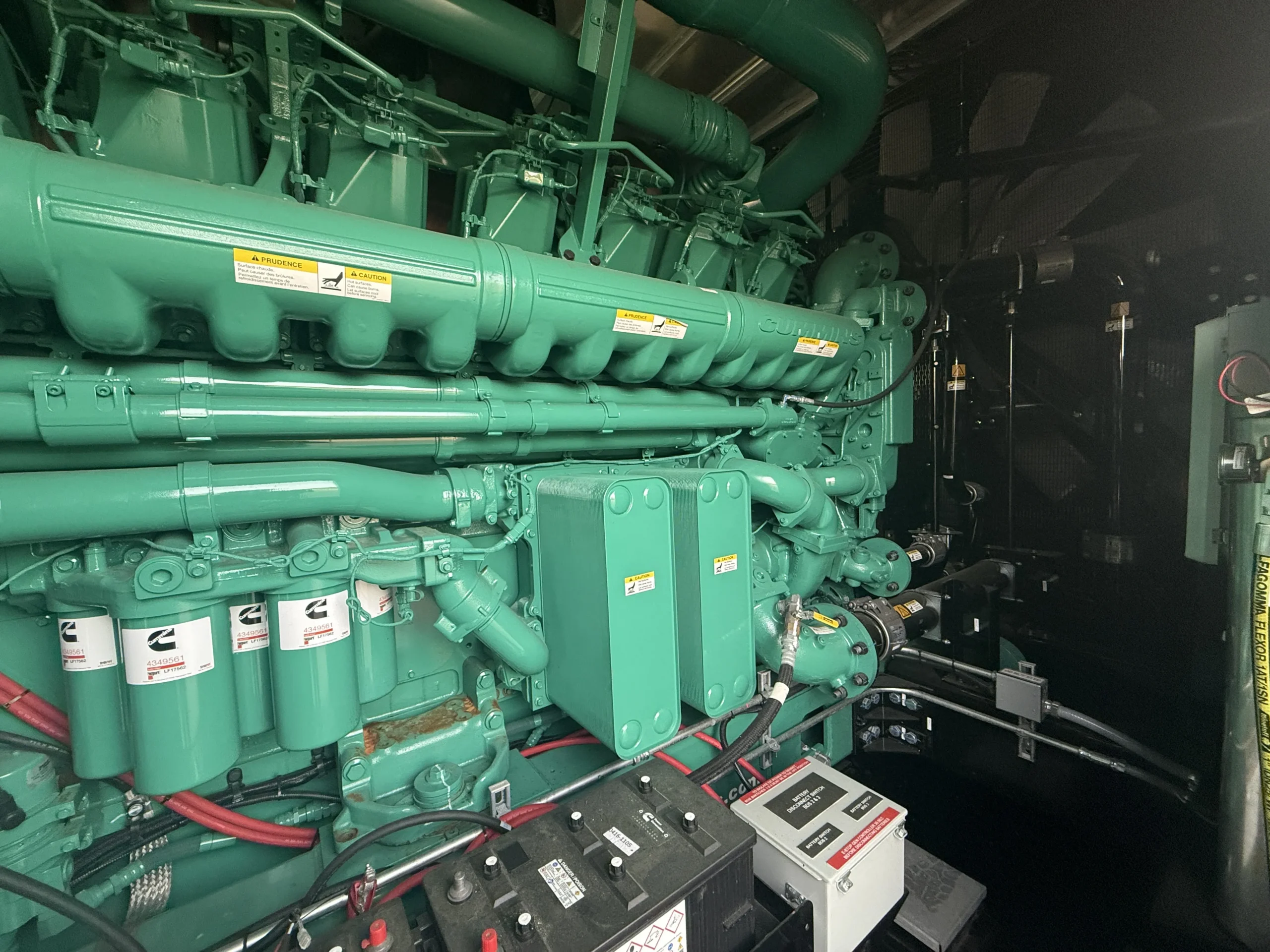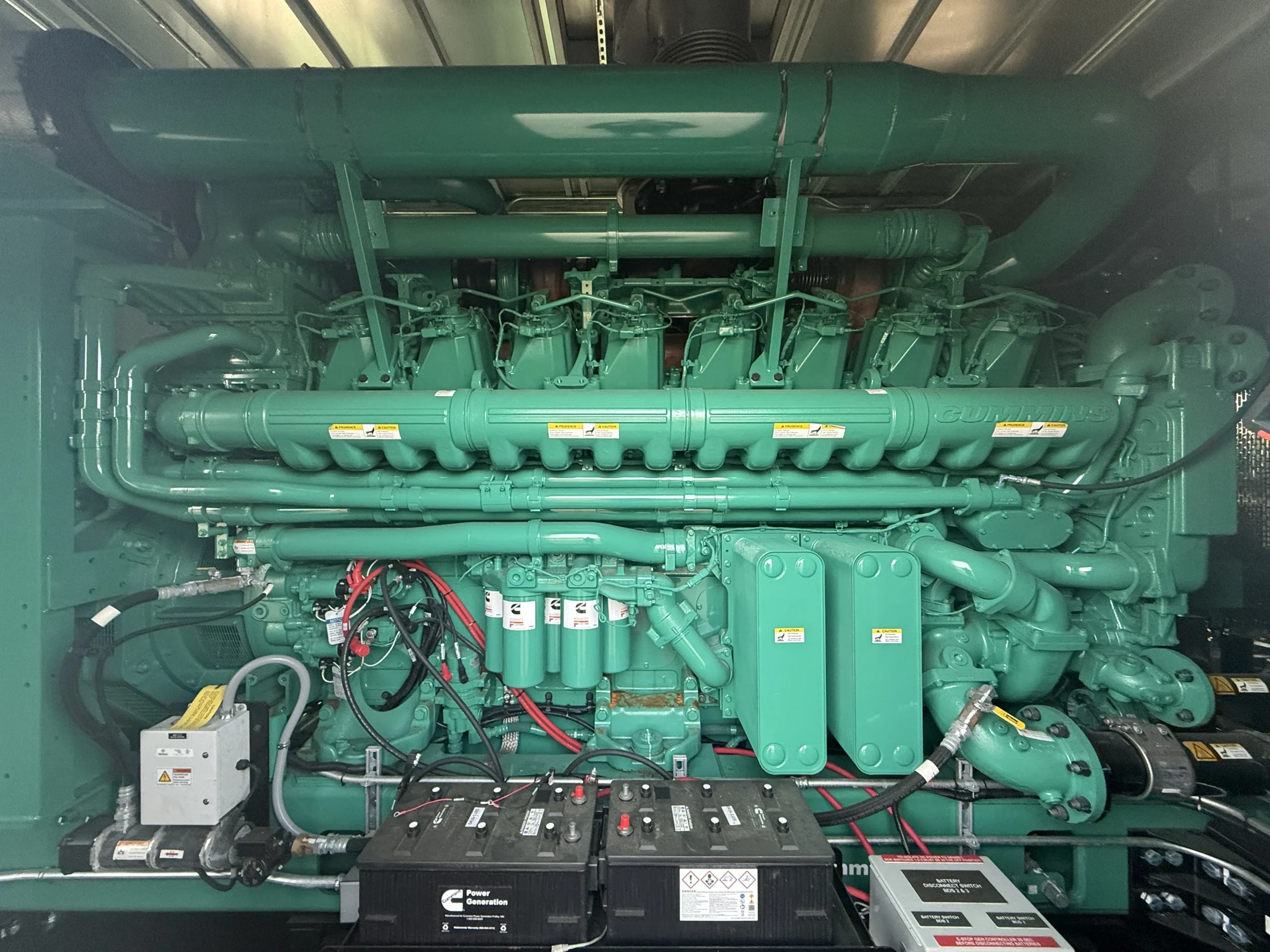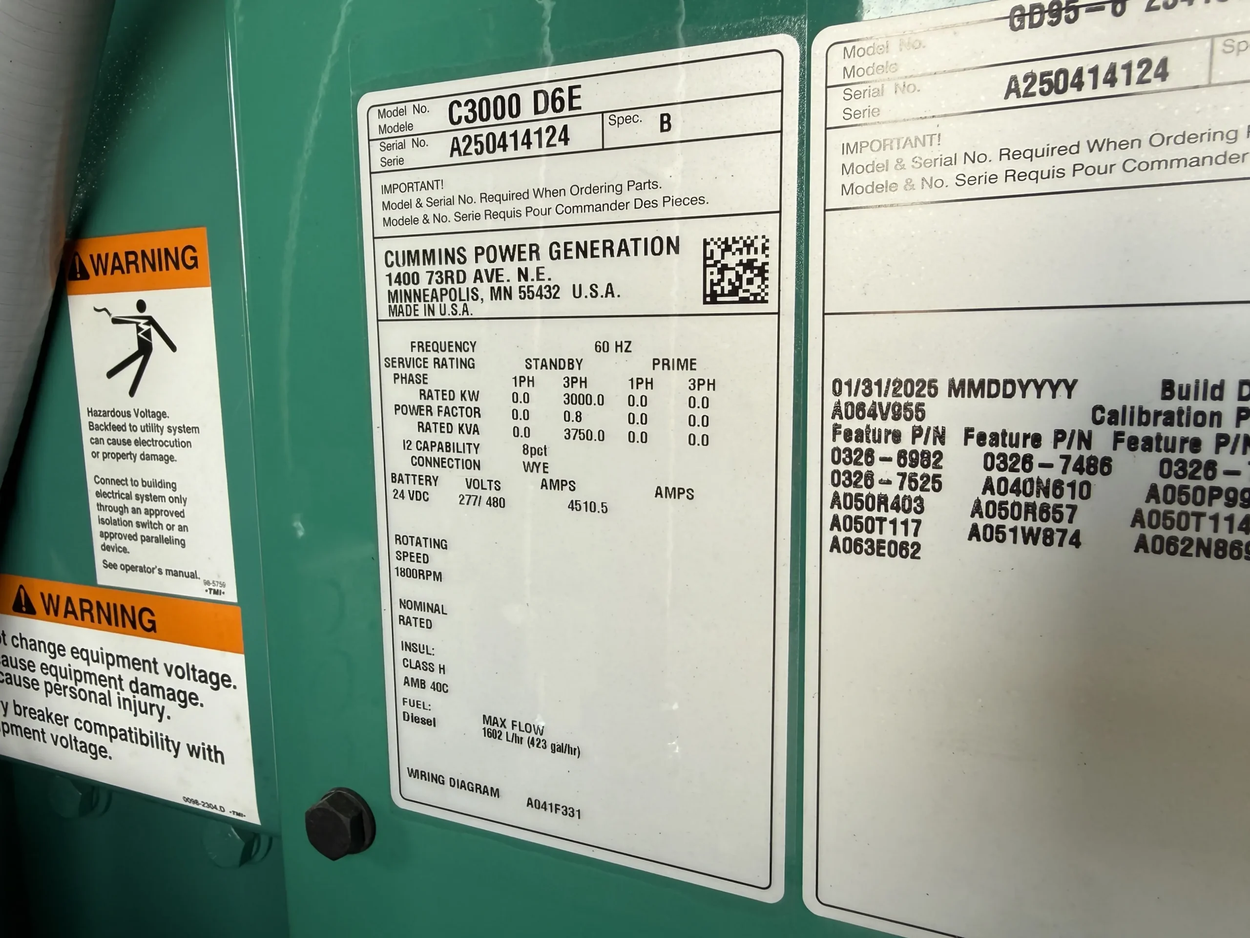 Brand new 2025 Cummins C3000D6E 3000kW diesel generator, powered by a Cummins QSK95-G9 engine (95.3L) with 0 original hours and a January 2025 build date. Rated 3000kW standby (3767 kW / 5051 HP @ 1800 RPM), this unit comes fully enclosed in a sound-attenuated weatherproof housing and includes factory-installed controls, breaker section, SENS battery monitoring system, dual battery chargers, block heater, coolant circulation pump, and complete support systems. EPA family SCEXL95.0AAA, CPL 5487. Clean, unused condition with full data plates and documentation – ready for immediate deployment in data center, industrial, or critical backup applications.